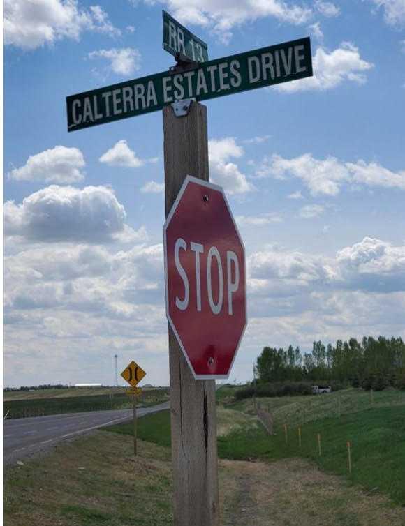 Take Deerfoot to Township Rd 262 (West). Follow TWP Rd 262 until Range Rd 13. Turn RIGHT (North) on RR 13 and follow until Calterra Estates Dr. Turn LEFT on Calterra Estates Drive and make another LEFT on Calterra Court.